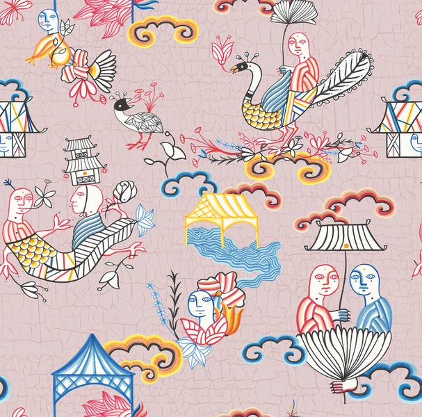 Walls4You Tapete surrealistischem Motiv Altrosa und Mehrfarbig 53 cm x 10 m
