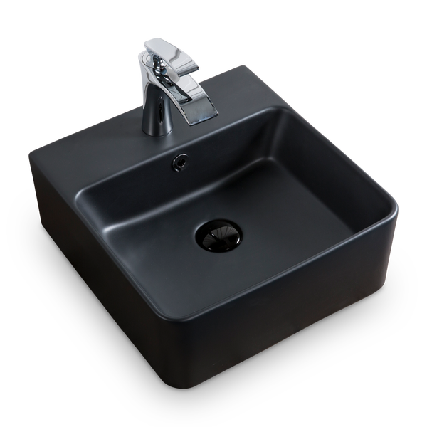 Wand Hänge Gäste WC Keramik Waschbecken Soho dünner Rand 40 x 42 cm Matt Schwarz