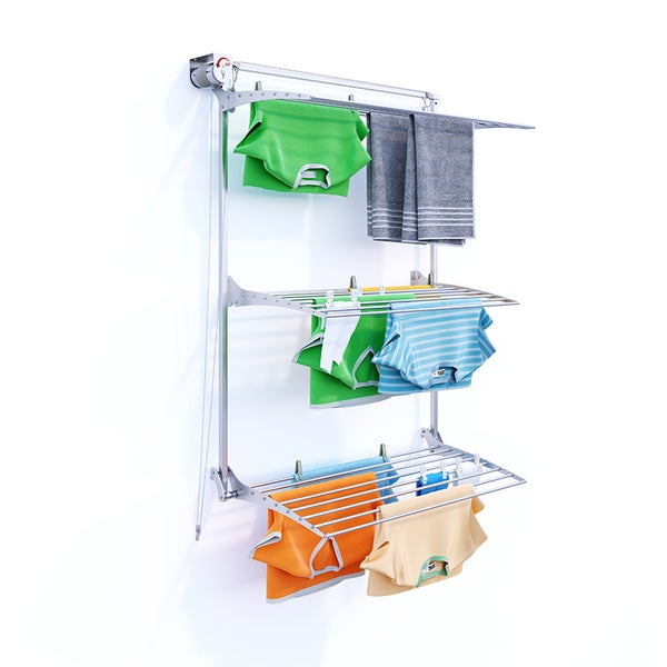 Wand-Wäscheständer Foxydry Tower 108 cm aus Aluminium – 3 Ebenen, vertikales Trocknen, Tragkraft 30 kg