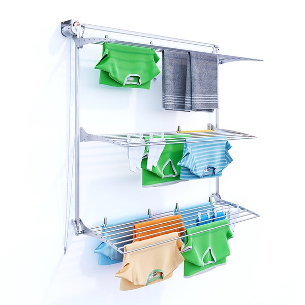 Foxydry Tower verfügt über drei unabhängige Gittern, die für maximale Flexibilität ausgelegt sind. Ein Gitter lässt sich bis zu 1,3 Meter von der Wand ausfahren, während das andere fest unten bleibt und das dritte auf mittlerer Höhe positioniert ist, was individuelle Trockenoptionen ermöglicht.