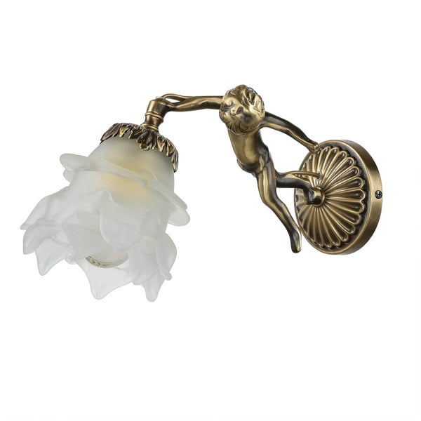 Wandlampe Glas Messing H: 13,5 cm in Bronze hell Weiß schwenkbar E27 Jugendstil Wandleuchte