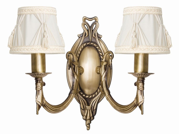 Wandlampe Stoff Messing B: 29 cm in Bronze hell Weiß E14 2-flammig Jugendstil Wandleuchte