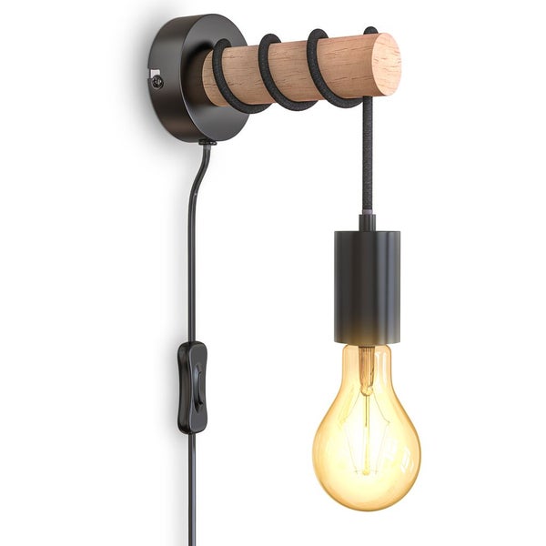 Wandleuchte - schalter, mit Stecker, E27 Fassung, max. 10W, schwarz