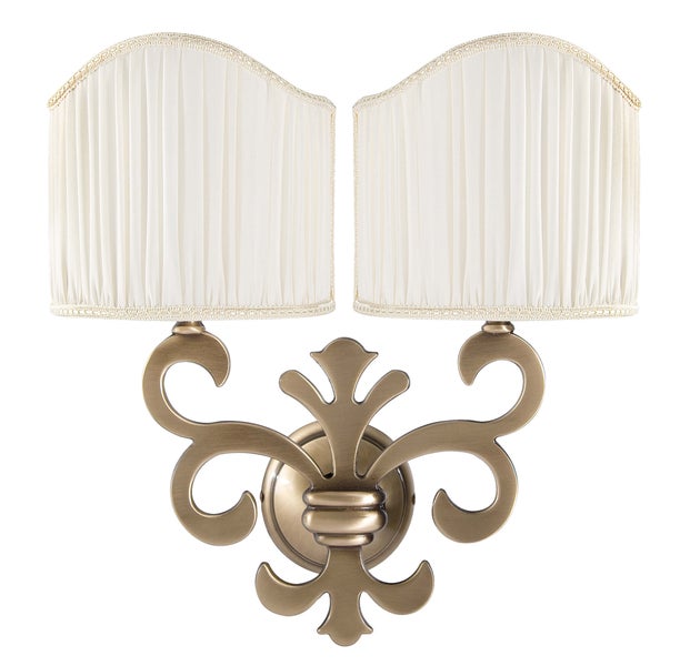 Wandleuchte Stoff Echt-Messing B: 36 cm in Bronze hell Weiß E14 2-flammig Jugendstil Wandlampe