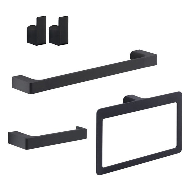 Kompletter Satz mattschwarzer Bad-Accessoires für die Wandmontage. Eine moderne, stilvolle und platzsparende Lösung zur Vervollständigung des Badezimmers, um es optimal zu organisieren. Mit diesem Zubehörset haben Sie immer alles zur Hand, was Sie brauchen. Bei KVstore, dem Experten für Badezimmermöbel, finden Sie zahlreiche Vorschläge zur Verschönerung Ihres Badezimmers, Qualitätsprodukte mit raffiniertem Design und einem hervorragenden Preis-Leistungs-Verhältnis.