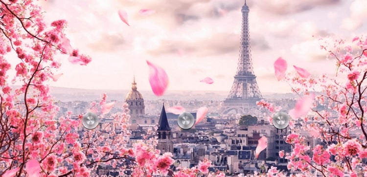 Wandpaneel, Wandgarderobe aus Acrylglas inkl. 3 Edelstahlhaken und Aufhängung Paris, Eifelturm und Kirschblüten WR00028, 60x30cm