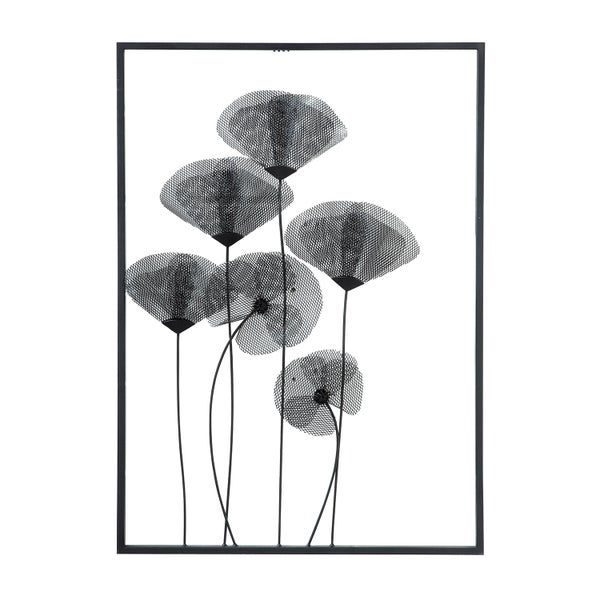 Bringen Sie Leichtigkeit in ihre Wohnräume! Das aus Metall gefertigte Wandrelief Mohn wird durch die Blumen zu einem Hingucker der besonderen Art! Mit diesem tollen Objekt verleihen Sie ihrem Zuhause ein neues Outfit. Dieses schwarze Schmuckstück mit Mohnblumen bildet einen abwechslungsreichen Kontrast und bereichert jeden Einrichtungsstil. Es ist modern und trotzdem sehr zeitlos. Ob als nette Begrüßung im Eingangsbereich oder in ihren Wohnräumen: Einen besonderen Reiz bekommen Wohnraum und Wand durch den Einsatz einer schmückenden Ausstattung! Mit diesem Wandrelief erzeugen Sie ein wunderbares Ambiente zum wohlfühlen! Es stellt mit seiner kühlen Optik des Metalls einen lebendigen Kontrast zu ihrer Einrichtung dar.