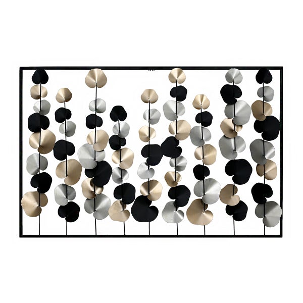 Holen Sie sich einen Eyecatcher in Ihr Zuhause! Das wunderschöne Wandrelief Ranken ist sehr modern und doch zeitlos. Das rechteckige Metall Relief in schwarzem Rahmen wird durch die schwarz, gold- und silberfarbenen Elemente zum tollen Blickfang. Diese Wanddekoration fügt sich in viele Einrichtungsstile ein.