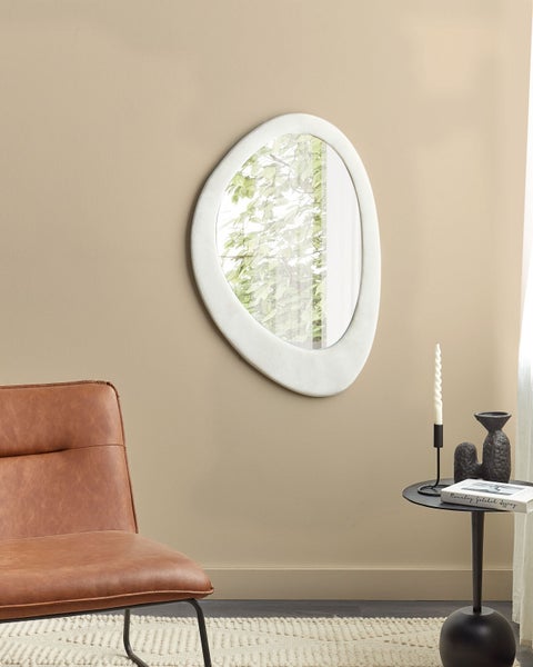 Wandspiegel AUDES 60 cm 90 cm Samtstoff Cremeweiß