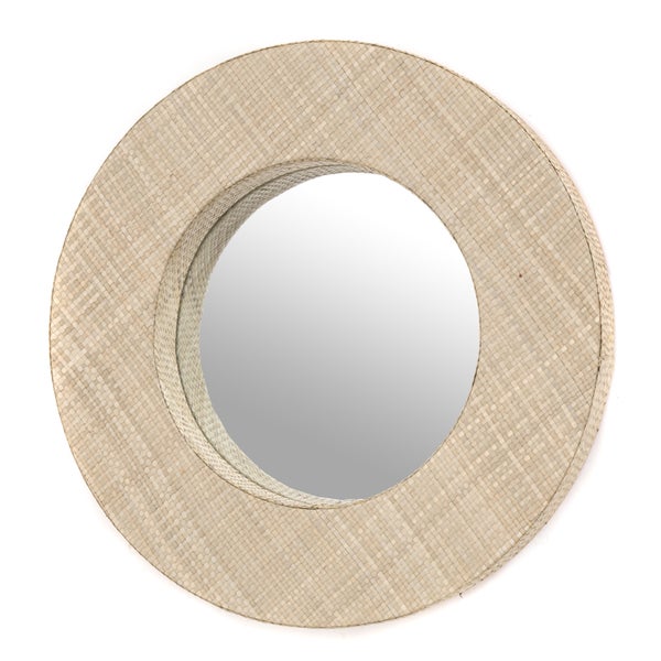 Wandspiegel LEAVES 50 rund, verziert mit Pandanusblättern hellbraun