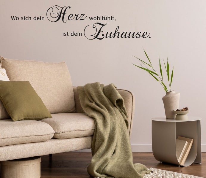 Wandtattoo | Wandspruch | Wo sich dein Herz wohlfühlt, ist dein Zuhause | Wandaufkleber | selbstklebend | rückstandslos abziehbar | Sticker | Spruch WTS0915 schwarz Format: 120x30cm