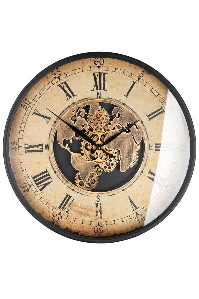 Die Zeit ist unser aller Begleiter. Es gibt nicht nur Tag und Nacht, Morgens, Mittags und Abends, sondern auch Stunde, Minute und Sekunde. Gerade für diese Zeiteinteilung benötigen wir eine Uhr. Formschön und im herausragenden Design fordert diese Wanduhr mit ihrer imposanten Größe Ihre Aufmerksamkeit. Im Material-Mix Holz kombiniert mit Metall hinter einer Glas-Scheibe zeigt sie die Stunden und Minuten an. Hierfür benötigt der Chronometer eine Batterie 1xAA. Eine in sich drehende Zahnrad-Kombination in silberfarben bildet unter Anderem das Innenleben, das durch 2xAA-Batterien angetrieben wird. Für die Zeitangabe und die Zahnrad-Kombination befindet sich jeweils ein Batterie-Fach auf der Rückseite. Dieser Zeitmesser ist ein wahrer Blickfang an jeder Wand und in jedem Raum.