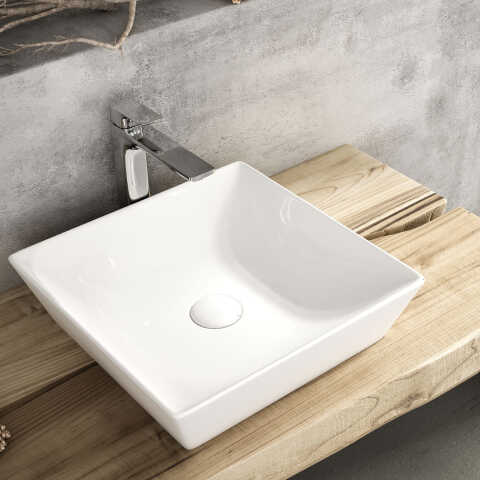 - BeschreibungAufsatzwaschbecken aus hochwertigem Keramik Der Aufsatzwaschtisch Krea-Dezente besticht durch seine edle Materialverarbeitung aus Keramik und seine stilvolle, Eckig Trapez Formgebung. Durch sein modernes Design trägt dieser zu einem besonderen Ambiente im Badezimmer bei. Der Waschtisch in Glanz Weiss besticht durch seine Eckig und kann mit einer Wandarmatur oder einer Armatur mit hohem Auslauf, die neben dem Waschtisch montiert wird, ergänzt werden. Weiss ohne Hahnloch 40x40