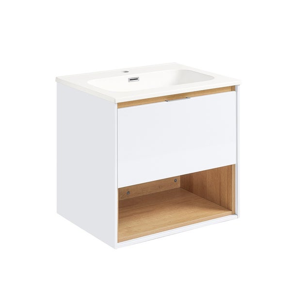 - Lieferumfang: Waschbeckenschrank, Keramikbecken (50×26×11 cm), Montagezubehör, Anleitung