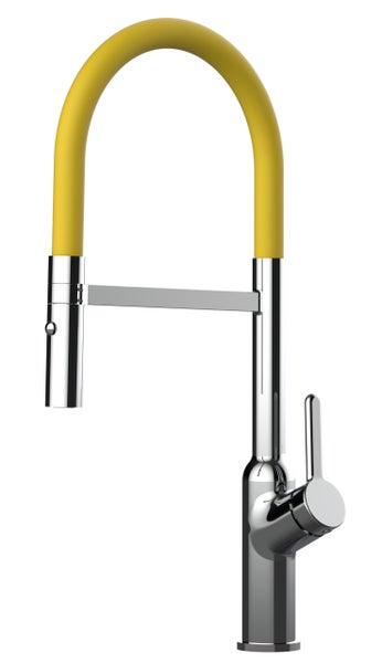 Wasserhahn Küchenarmatur, BOD, mit 360° schwenkbarem Auslauf, abnehmbare 2 strahl Handbrause, Verchromt / Gelb