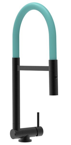 Wasserhahn Vorfenster Küchenarmatur, Umklappbar 4,5 CM, mit 360° schwenkbarem Auslauf, abnehmbare 2 strahl Handbrause, Schwarz Matt / Türkis