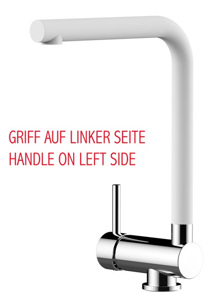 Wasserhahn Vorfenster Küchenarmatur, Umklappbar 6 CM, LINKER HEBEL, mit 360° schwenkbarem L-Auslauf, Verchromt / Weiß Granit