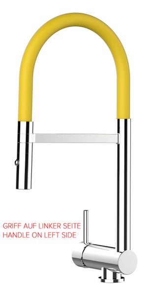 Wasserhahn Vorfenster Küchenarmatur, Umklappbar 6 CM, LINKER HEBEL, mit 360° schwenkbarem Auslauf abnehmbare 2 strahl Handbrause, Verchromt / Gelb