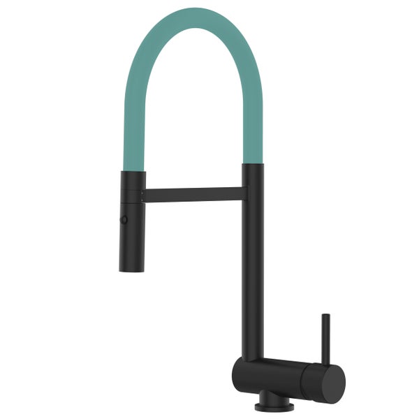 Wasserhahn Vorfenster Küchenarmatur, Umklappbar 6 CM, mit 360° schwenkbarem Auslauf, abnehmbare 2 strahl Handbrause, Schwarz Matt / Türkis