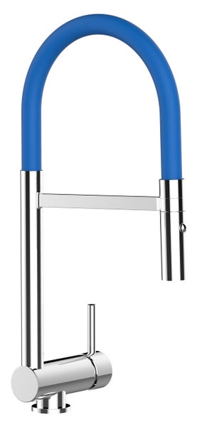 Wasserhahn Vorfenster Küchenarmatur, Umklappbar 6 CM, mit 360° schwenkbarem Auslauf, abnehmbare 2 strahl Handbrause, Verchromt / Blau