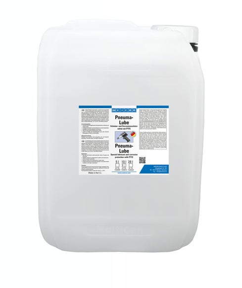 WEICON Pneuma-Lube ist als Schmier- und Korrosionsschutzmittel die Universallösung für alle beweglichen und zu schützenden Teile im Bereich Druckluftgeräte und -zubehör. Die spezielle Produktformulierung mit einem hohen PTFE-Anteil ermöglicht den Einsatz für vielfältige Aufgaben: Schmierung, Korrosionsschutz, Reinigung, Wasserverdrängung und Konservierung. Das Produkt kann nicht nur bei der Installation oder Wartung von Druckluftgeräten oder -zubehör, sondern auch bei laufendem Betrieb eingesetzt werden. Seine ausgezeichnete Witterungsbeständigkeit erlaubt den Einsatz auch in anderen Bereichen, z.B. in der On- und Offshore Industrie.