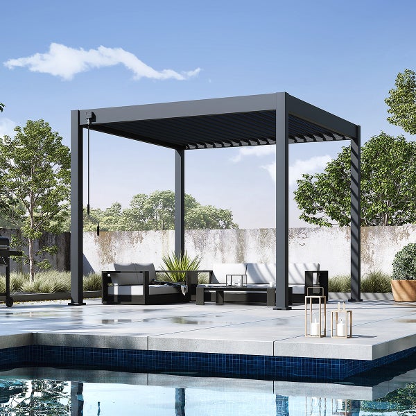 Weide Classic Alu-Stahl Pavillon 3 x 3 M Anthrazit Pergola Freistehend mit Pfostenstärke 11,6 cm x 11,6 cm