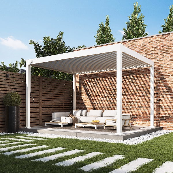 Weide Classic Alu-Stahl Pavillon 3 x 4 M Weiß Pergola Freistehend mit Pfostenstärke 11,6 cm x 11,6 cm