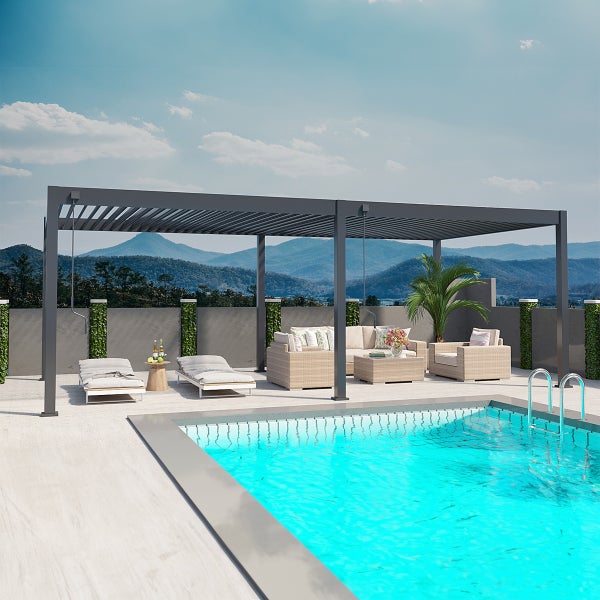 Weide Deluxe Pergola 3,6 x 7,2 M - Freistehend, Voll-Aluminium, Lamellendach, Anthrazit