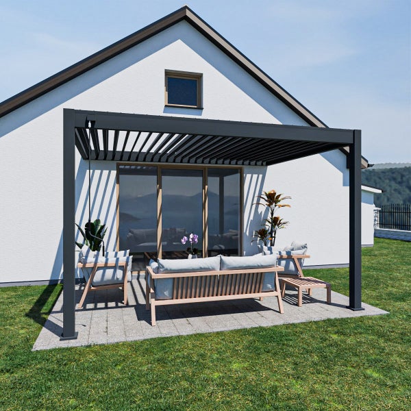 Weide Deluxe Wandpergola 3 x 4 M - Voll-Aluminium, Lamellendach, Anthrazit