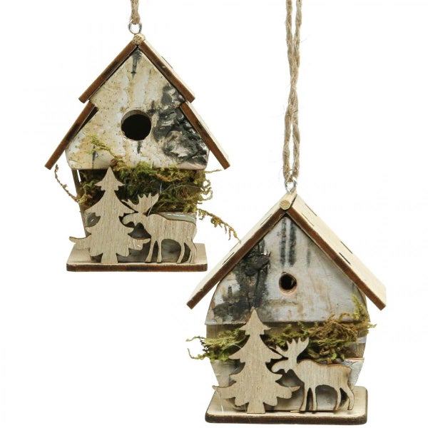 Weihnachtsanhänger Holz Vogelhäuschen Set 4 Stück, Christbaumschmuck Deko