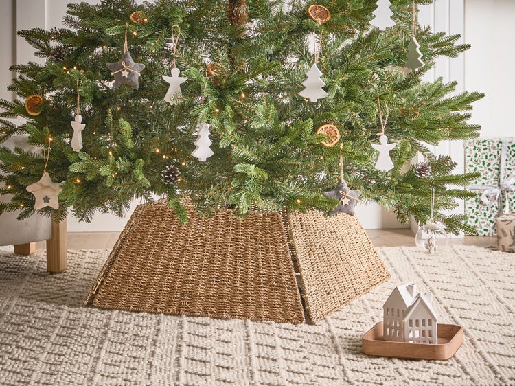 Handgefertigter, quadratischer Weihnachtsbaumrock. Verleihen Sie Ihrem Zuhause zu Weihnachten eine festliche Note mit diesem wunderschön geflochtenen Weihnachtsbaumrock aus hochwertigem Seegras. Handgefertigt mit viel Liebe zum Detail, vereint er Charme und Langlebigkeit. Dank seines vielseitigen Designs passt er auf Baumständer unterschiedlicher Größen und ist so das perfekte Accessoire, um Ihre Weihnachtsdekoration abzurunden. Details: Typ Weihnachtsbaumkragen. Farbe: Naturfarben. Material: Rattan. Material: Seegras. Zusätzliches Material: Eisen. Form: Quadratisch. Handgefertigt: Ja. Abmessungen: Tiefe: 59 cm. Breite: 59 cm. Höhe: 28 cm. Gewicht: 1.2 kg. .Sie kaufen: 1 x Weihnachtsbaumkragen. Produktvorteile: Zeitloses Design, Handgefertigte Präzision, Nur für Innenräume geeignet, Qualitativ hochwertiges Material, Schnell und einfach im Gebrauch. Montage: Benötigt keine Montage. Zusatzinformationen: Bitte beachten Sie, dass jedes Produkt handgefertigt ist. Abweichungen in Struktur, Farbe oder Form können aufgrund der Eigenschaften der verwendeten Materialien auftreten und stellen keinen Qualitätsmangel dar. Pflegeanleitung: Seegras: 1.Die Reinigung sollte ausschließlich mit einem weichen, trockenen Tuch und ohne Reinigungsmittel erfolgen.