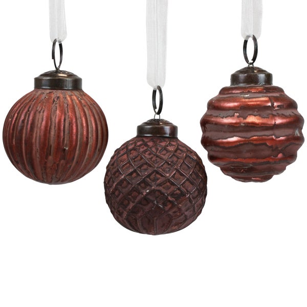 Weihnachtsbaumkugeln Glas Vintage-Stil Rotbraun, 9er-Set Rautenmuster Weihnachtsschmuck Ø5cm, 9 Stück