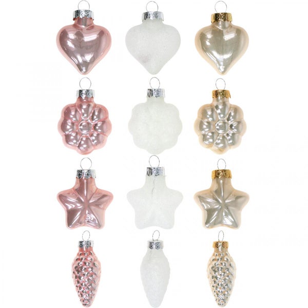 Weihnachtsbaumschmuck Glas Dekofiguren Herz Stern Blüte Zapfen, 12 Stück