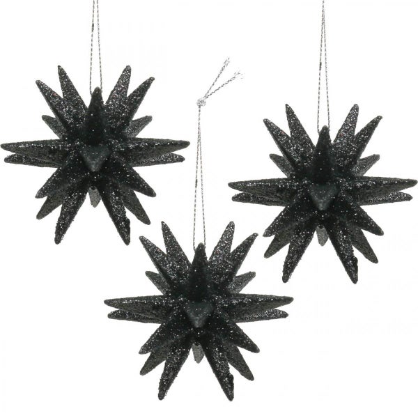 Weihnachtsdeko Sterne Schwarz Ø7,5cm Glitzer Hängedeko 8 Stück Christbaumschmuck