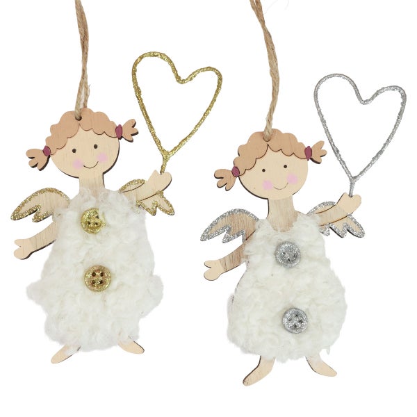 Weihnachtsengel als zauberhafter Christbaumschmuck Unsere handbemalten Weihnachtsengel mit Herz und Wolkenkleid sind der perfekte Schmuck für Ihren Weihnachtsbaum oder Türkranz. Die liebevoll gestalteten Details und die festlichen Farben strahlen Wärme und Freude aus. Einzigartige Details Jeder Engel trägt ein wolliges Kleid mit glitzernden Knöpfen und hält ein Herz aus Draht. Die gold- und silberfarbenen Akzente geben der Dekoration eine elegante Note. Die Rückseite bleibt in rustikalem Holzdesign und die Jutekordel ergänzt das Gesamtbild perfekt. Vielseitige Weihnachtsdeko Ob an schneebedeckten Zweigen, weißen Kugeln oder modernen, künstlichen Blumen – die Engel passen sich Ihrem Stil an. Auch ideal für Türkränze aus künstlichen Weidenzweigen oder als Hingucker in Ihrer Weihnachtsdeko mit Trockenblumen geeignet. Lieferumfang Sie erhalten 8 sorgfältig sortierte Engel, jeweils mit goldenen und silbernen Details. Bitte beachten Sie: Auf den Produktbildern abgebildetes Zubehör ist nicht im Lieferumfang enthalten. Höhe: ca. 14,5 cm - Breite: ca. 10 cm - Länge mit Kordel: ca. 21 cm Farben: Weiß, Braun, Natur, Rosa, Gold/Silber - Material: Holz, Metall, Kunststoff, Textil, Jute Anb.Nr.: 14335 EAN: 4067555143350