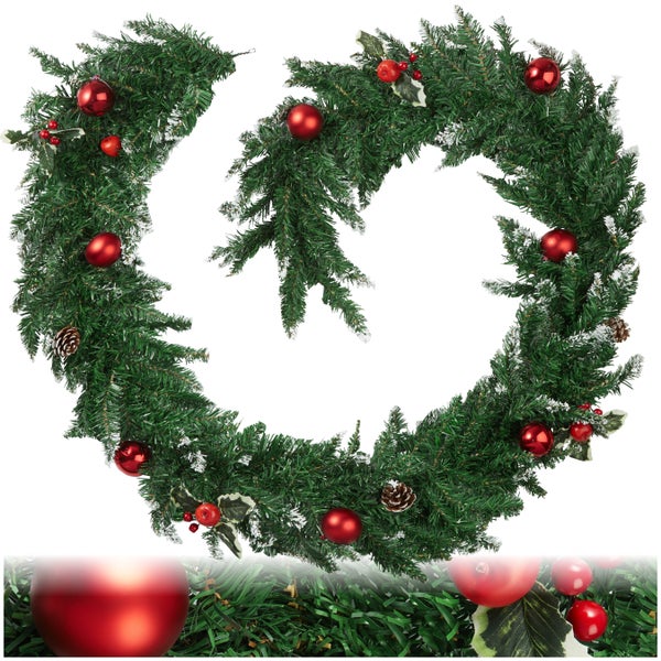 Weihnachtsgirlande tectake mit Schlaufe zum Aufhängen naturgetreu, 270 cm rot/grün