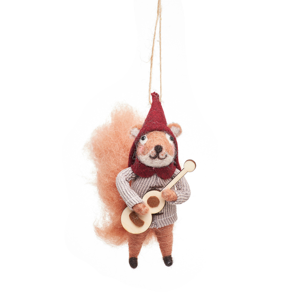 Die hängende Dekoration wird Ihrer Weihnachtsdekoration einen Hauch von Spaß und Verspieltheit verleihen. Dieses Ornament stellt ein Gitarre spielendes Eichhörnchen dar und ist mit viel Liebe zum Detail gefertigt, was es zu einer schönen Ergänzung für jeden Baum oder jede Girlande macht.