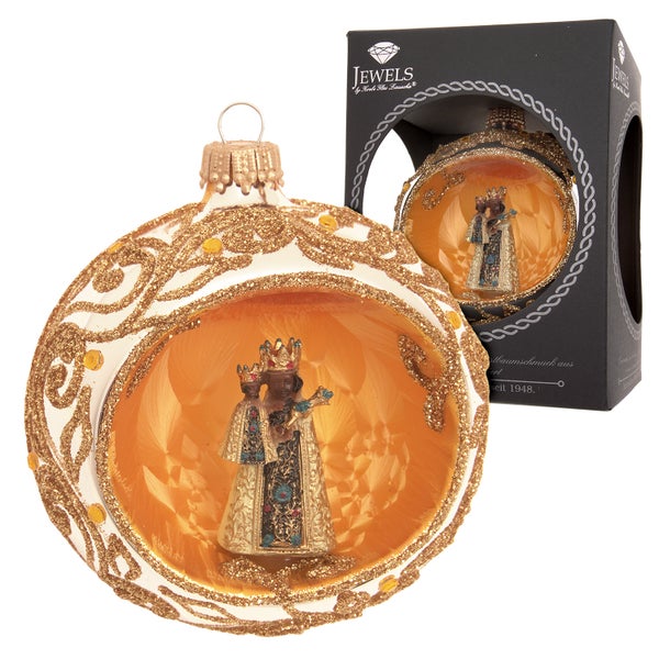 Weihnachtskugel Reflex Eislack mit Schwarzer Madonna Goldfarbig 10cm, 1 Stck., Weihnachtsbaumkugeln, Christbaumschmuck, Weihnachtsbaumanhänger