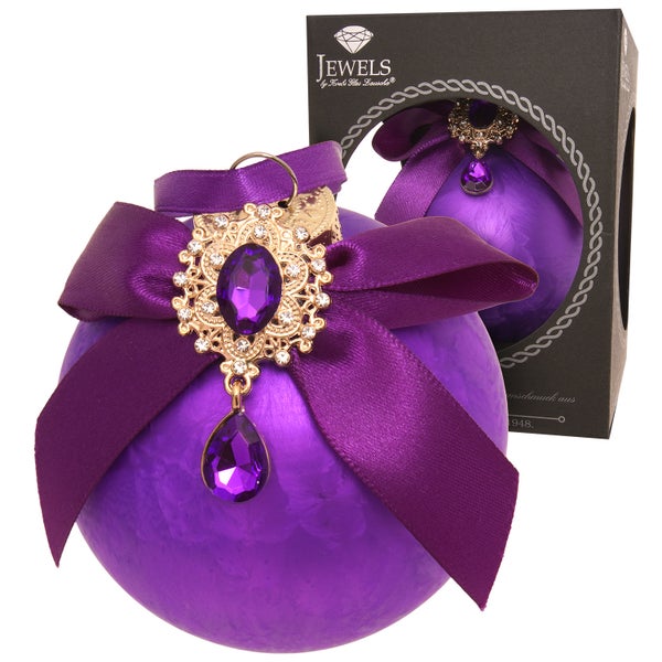 Weihnachtskugel Strassstein Schleife Eisdesign Violett 8cm, 1 Stck., Weihnachtsbaumkugeln, Christbaumschmuck, Weihnachtsbaumanhänger