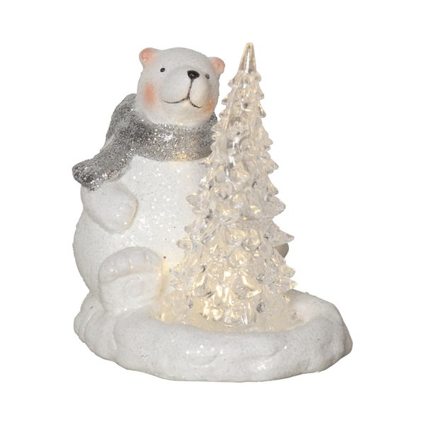 Weihnachtsleuchte Eisbär ,Polare' mit LED Tannenbaum, Batterien + Timer, weiß, H 14cm