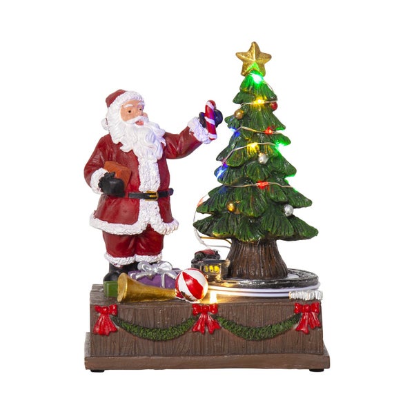 Weihnachtsszenerie ,Kidsville', Weihnachtsmann mit Weihnachtsbaum, rotierend, RGB, H 18,5cm