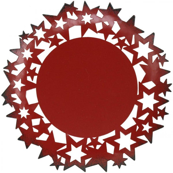 Weihnachtsteller Dekoteller Metall mit Sternen Rot für Adventskranz, Festliche Kerzenteller Ø34cm