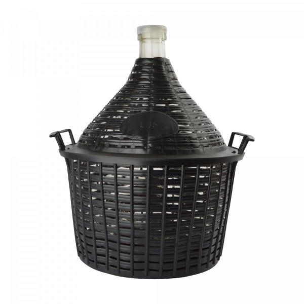Weinballon, Glasballon, Dame Jeanne im Weidenkorb - 15L, normale Öffnung + Kunststoffstopfen