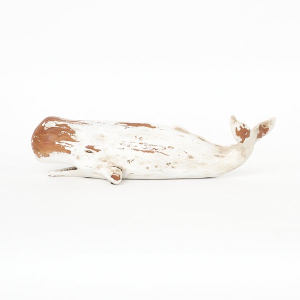 Der Pottwal besteht aus Kunstharz, ist handbemalt und misst 40x13 cm.