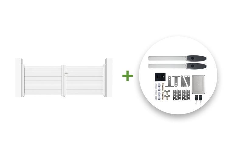 Weißes elektrisches Flügeltor EIGER 300B115 + Motorisierung HICKER B200