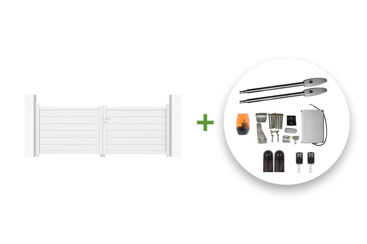 Weißes elektrisches Flügeltor EIGER 300B115 + TANKER B250-Motorisierung