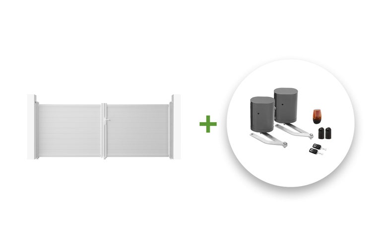 Weißes elektrisches Flügeltor EIGER 400B160 + Motorisierung BUNKER B500
