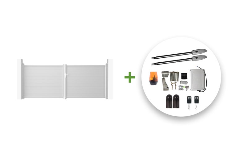 Weißes elektrisches Flügeltor EIGER 400B160 + Motorisierung TANKER B250