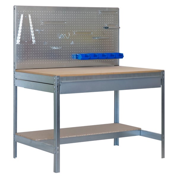 Werkbank BUFFALO mit Werkzeugwand und Schubfach | HxBxT 84x150x61cm | Traglast 600kg | Verzinkt