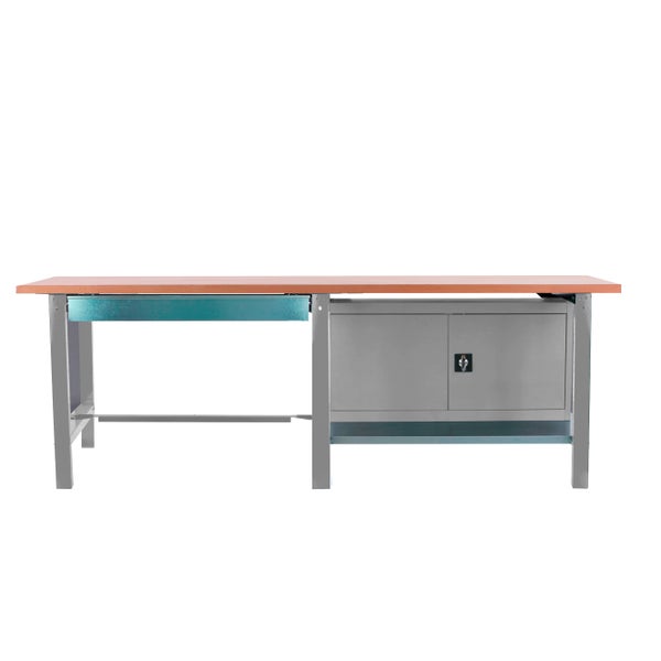 Werkbank BUFFALO WOOD mit 1x Schublade + Schrank| HxBxT 86,5x210x75cm | Traglast 1000kg | Grau